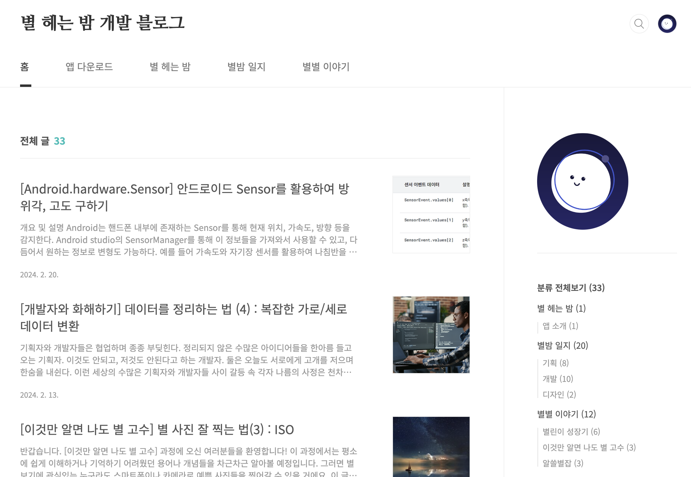 별 헤는 밤 개발 블로그 - 티스토리